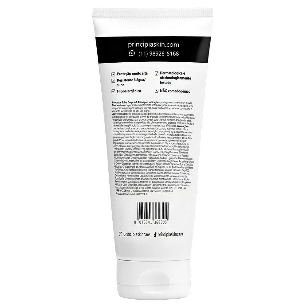O Protetor Solar Corporal Principia PS-03 com FPS 60 e 2% Niacinamida oferece uma proteção solar muito alta e eficaz para o corpo. Desenvolvido com uma textura fluida e de toque seco, é o protetor ideal para quem busca o máximo de defesa solar sem abrir mão do conforto e do controle da oleosidade.