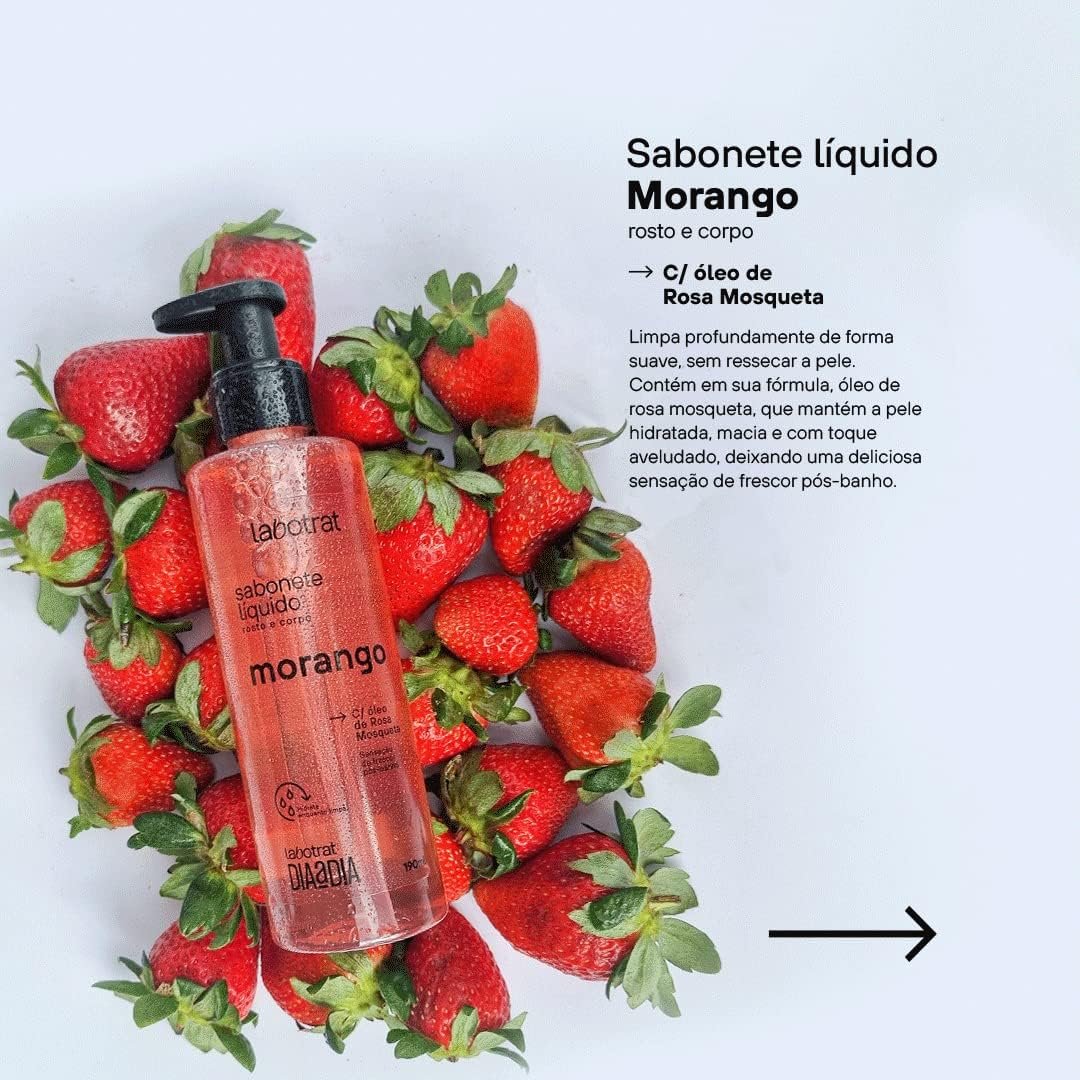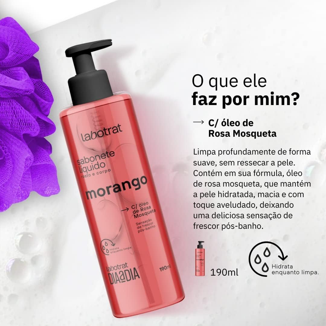 Sabonete Líquido Labotrat Morango 190ml: Limpeza Suave, Hidratação e Toque Aveludado com Óleo de Rosa Mosqueta para Rosto e Corpo
