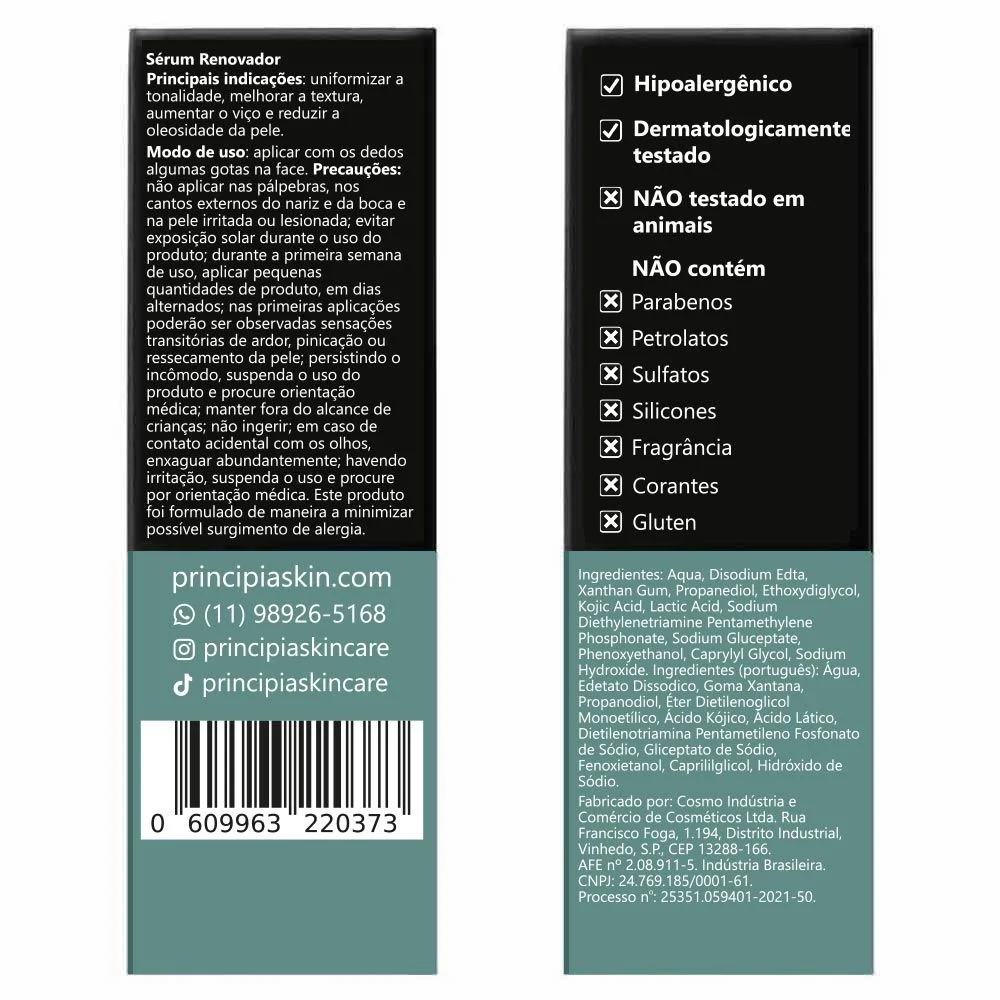 Obtenha uma pele visivelmente mais lisa, uniforme e com menos imperfeições com o Sérum Facial Principia AM-10. Este sérum renovador noturno combina a força de um Alfa-Hidroxiácido (AHA) suave com um potente clareador, sendo ideal para quem tem acne, oleosidade excessiva, poros dilatados e manchas escuras, como as causadas por inflamações (acne) ou o melasma.
